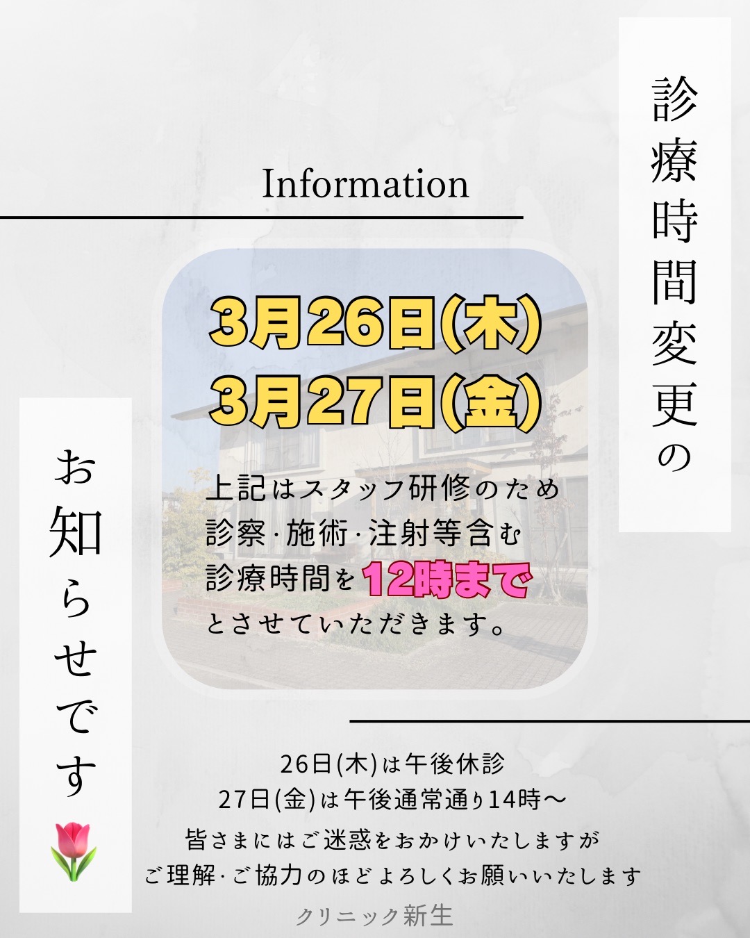 🌸診療時間変更のお知らせ🌸