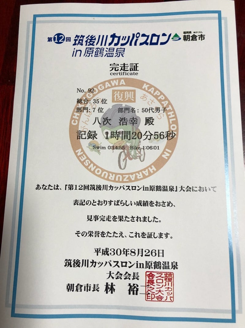 全体で150人中35位で自分としては満足だったけど、アクシデントもあり今後の糧になりました。が、60台、70台のエイジ1位には負けました。